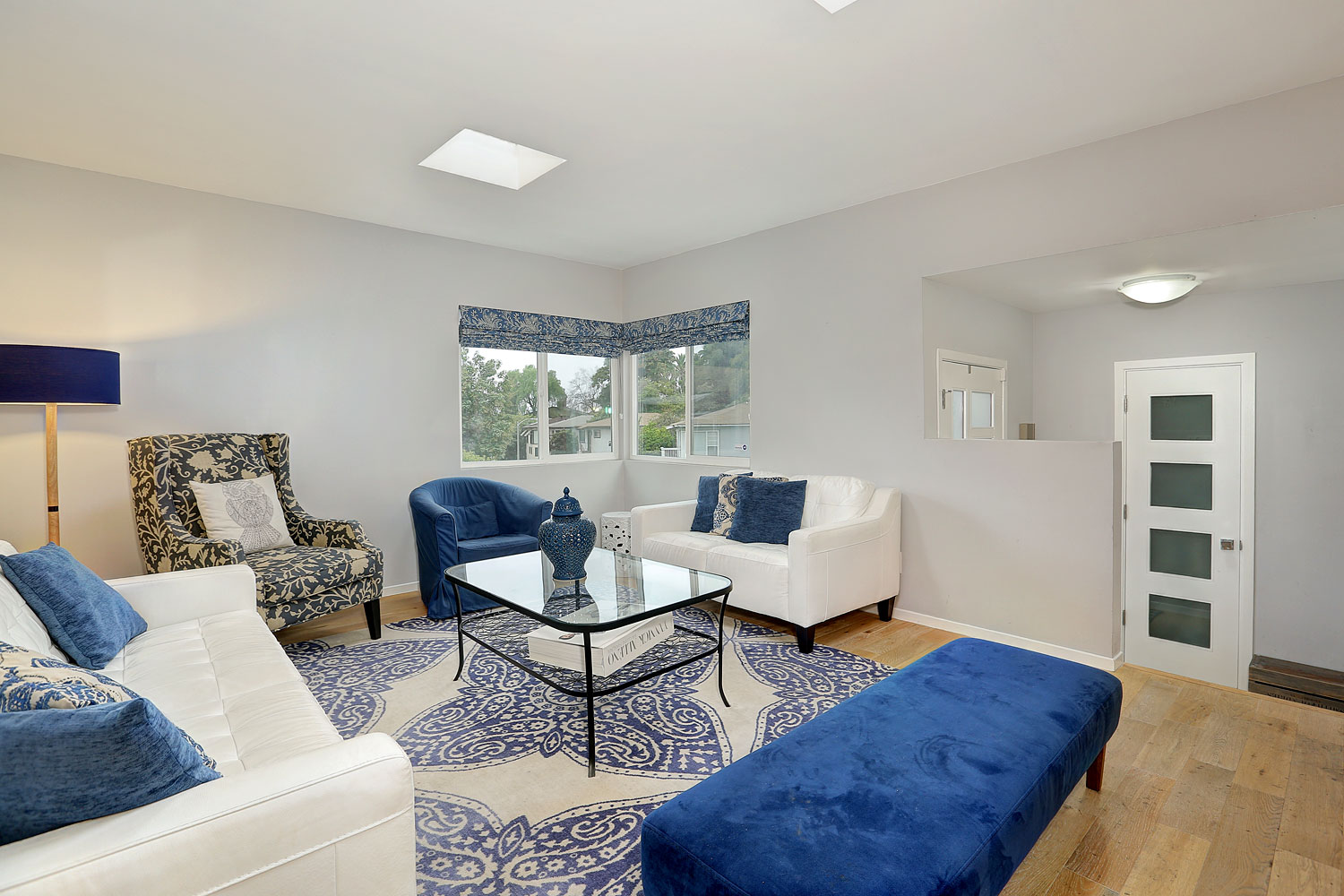 This updated contemporary with clean lines and an open floor plan is located on a quiet street minutes from Cal State University and a short drive to downtown Los Angeles. The gourmet kitchen is complete with Cesarstone counters and stainless steel appliances. The remodeled interior is light and bright featuring hardwood floors, high ceilings and walls for art. The master bedroom suite includes a walk-in closet and dual vanity bathroom sinks. Two-car garage plus a large lower level bonus room is ideal for a home office or storage space. Delightful terraced back yard is nicely landscaped and has a flat area for a swing set or al fresco dining.